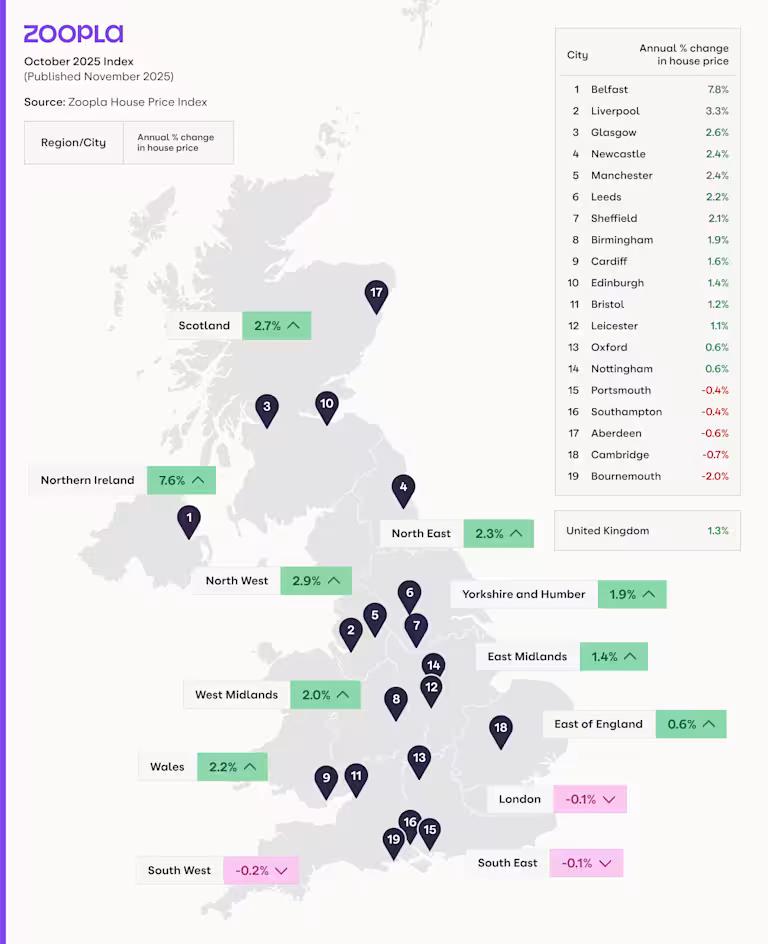 Buna karşılık Kuzey İngiltere, İskoçya ve Galler’de fiyat artışları hâlâ %2–3 bandında devam ediyor.