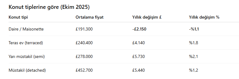 İngiltere genelinde konut fiyatları son 1 yılda ortalama %1,3 arttı.